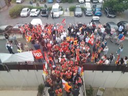 Photo : Le 11 juillet dernier. La CGT Castorama avec les camarades de la fédération du Commerce présents pour les salariés de Conforama pendant la réunion du CCE