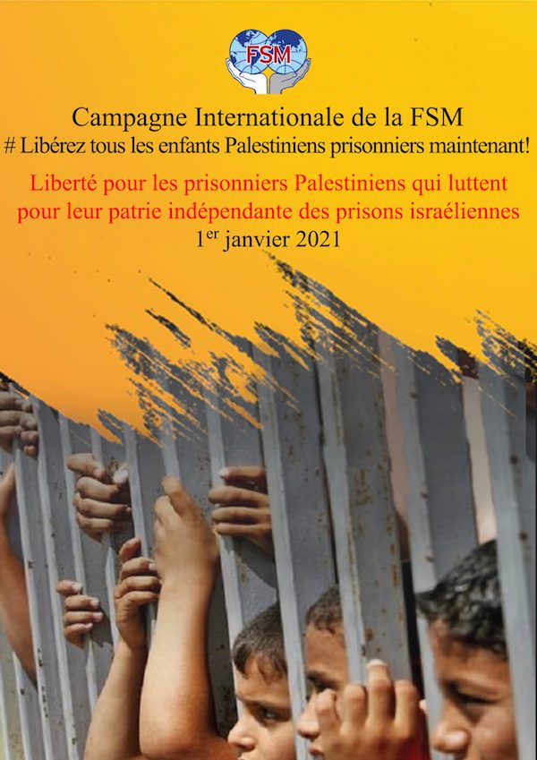 La campagne internationale de la FSM pour la libération des prisonniers Palestiniens, en particulier les enfants, des prisons israéliennes, qui a débuté le 1er janvier 2021, est une importante campagne internationaliste pour la libération de plus de 155 enfants qui sont actuellement détenus dans les prisons d’occupation.