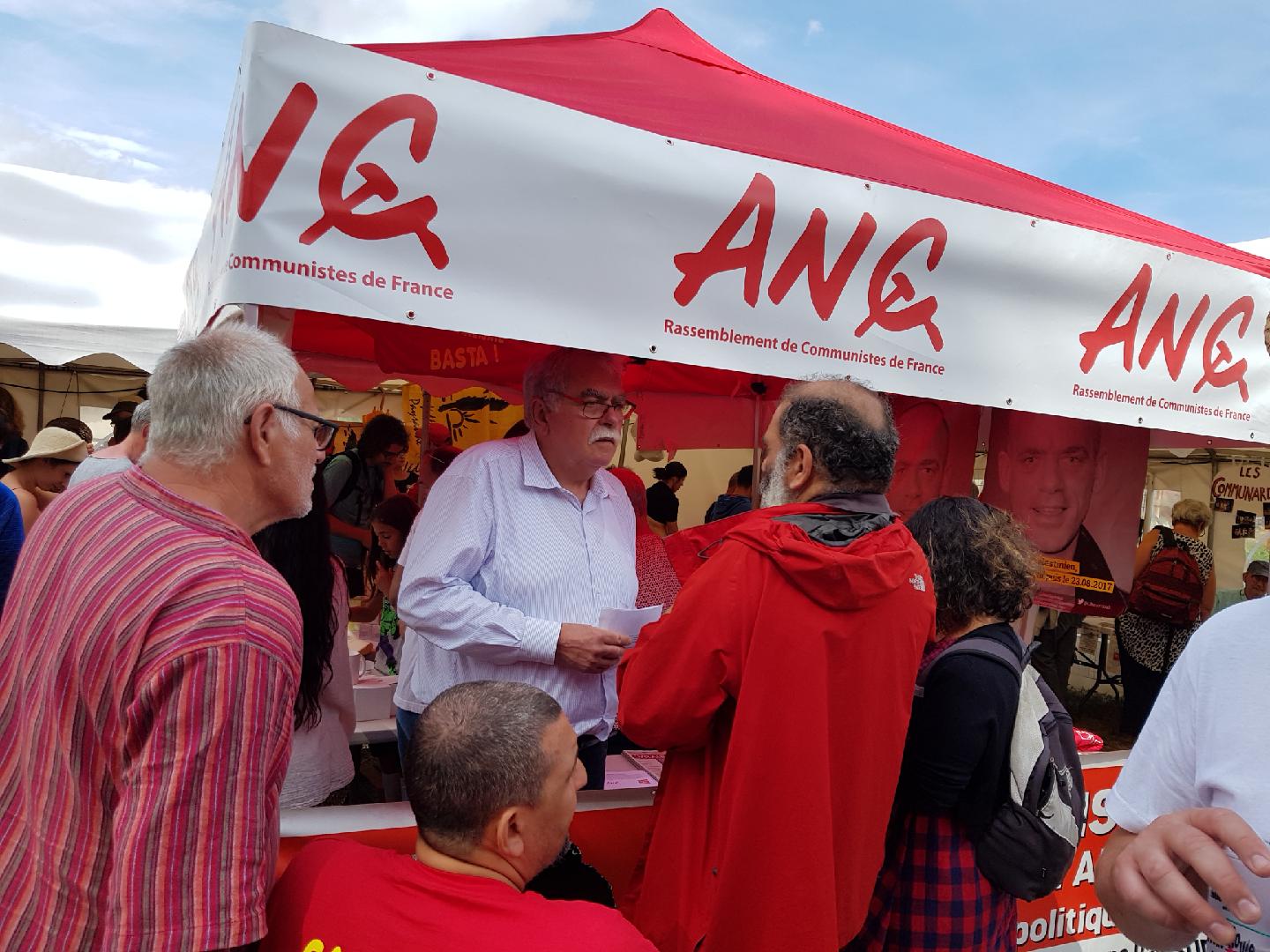 - - Rôle et tâches de l’ANC. « En France, nous souhaitons rassembler notre camp, sur une base de lutte de classe, et décidés à combattre le « capitalisme » sans compromis. ». Force fut de constater que, même si nous sommes en progression constante depuis 3 ans, l’engagement militant n’est pas encore à la hauteur des enjeux. Pourtant cette réunion nous a permis de s’engager sur des réunions publiques délocalisées afin de mieux faire connaitre notre existence et nos propositions. Le bien fondé de ces décisions a été mesuré dès l’ouverture du festival avec une participation jamais vue sur notre stand. De nombreuses demandes d’explications sur la démarche de l’ANC, ses propositions et de ce fait une diffsusion massive de notre Manifeste. Nous avons fait des adhésions. Bien sûr nous avons abordé la question de notre stand pour la fête de l’Huma (nous avons besoin de volontaires les jours qui précèdent la fête et bien sûr les vendredi 14, samedi 15 et Dimanche 16 septembre). Nous avons abordé la question de notre site : http://ancommunistes.org. Nous disposons là d’un outil véritablement d’envergure national (comme notre facebook https://www.facebook.com/associationnationaledescommunistes/ qui reprend et popularise les articles du site).