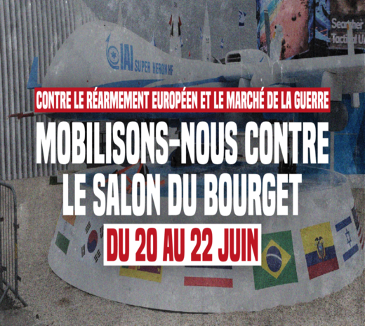 Ainsi, nous nous joignons à l’appel à participation à la manifestation contre le salon du Bourget le 21 juin, lancé par la Coalition « Guerre à la Guerre », au départ de la Bourse du travail à Bobigny (93) à 13h. Mobilisons-nous contre le génocide en Palestine, contre l’économie de guerre et les marchands de mort qui font leurs profits dans l’escalade belliqueuse.