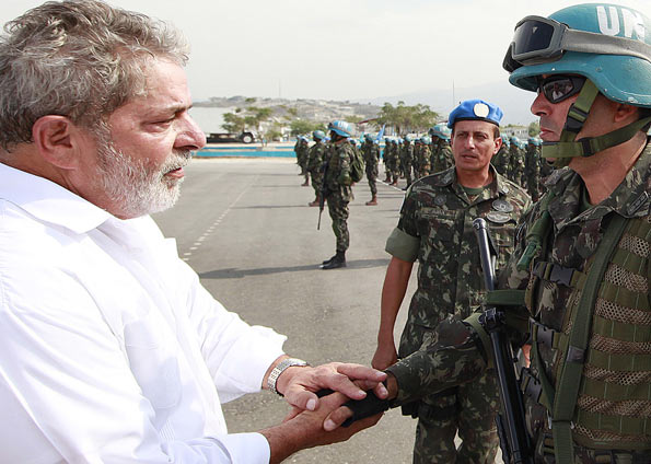 Le président brésilien Luiz Inácio Lula da Silva visite le bataillon brésilien de la Mission des Nations Unies pour la stabilisation en Haïti (MINUSTAH) à Port-au-Prince, le 25 février 2010. Photo : Ricardo Stuckert/Presidência)Il est regrettable qu’aucun des deux pays n’ait choisi d’utiliser son droit de veto pour mettre fin à cette nouvelle atteinte à la souveraineté haïtienne. Les États-Unis, bien sûr, sont à l’origine de cette résolution et utilisent un État fantoche, le Panama, pour plaider en faveur de sa mise en œuvre.