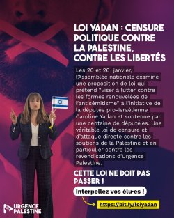 Accueil > Voir aussi > Non à la Loi Yadan, non à la censure de la solidarité palestinienne