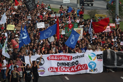 Les manifestations contre la politique du président d’extrême droite, Bolsonaro, sont très nombreuses. Comme en mai dernier, où les étudiants étaient des dizaines de milliers à descendre dans la rue pour protester contre les coupes dans l’éducation. (Photo Pescarts)