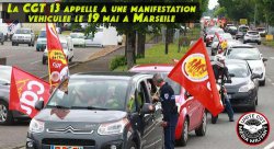 « La CGT organise la résistance même avec les contraintes des gestes barrières et de la distanciation physique » : une manifestation en voiture, à l’appel de l’Union départementale CGT des Bouches du Rhône, aura lieu le mardi 19 mai à 18h à Marseille.