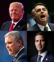 [7] Plus, évidemment, leurs habituels comparses : le chilien Sebastian Pinera (sauvé de la fureur des mouvements sociaux par l’explosion de la pandémie) ; l’équatorien Lenín Moreno (lequel, trahissant la gauche qui l’a élu, a détruit l’Equateur en deux ans) ; la bolivienne Janine Añez (présidente de facto après le coup d’Etat contre Evo Morales et manœuvrant pour se maintenir au pouvoir en tentant d’empêcher la future élection présidentielle de septembre prochain) ; ainsi que leurs amis conservateurs du Groupe de Lima – Canada, Costa Rica, Guatemala, Honduras, Panamá, Paraguay, Pérou. Sans parler, évidemment, de l’Union européenne.