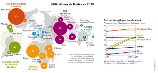 Nourri par le soutien d’États puissants ainsi que par un prosélytisme efficace, son succès va désormais de pair avec le recul d’idéologies porteuses d’espoirs plus terrestres. Avec plus de 660 millions de membres et des antennes dans la quasi-totalité des pays, les évangéliques constituent l’une des forces politiques les plus puissantes et les plus structurées de la planète.
