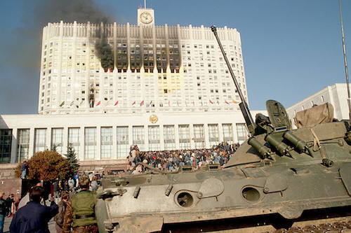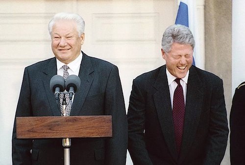 Deux ans plus tard, en 1993, Eltsine a bombardé le parlement russe, avec les encouragements et les applaudissements du président américain Clinton et de tous les autres dirigeants occidentaux supposés démocratiques, afin d’ouvrir la voie à la privatisation des biens de l’État soviétique, qui s’est avérée être le plus grand pillage de tous les temps et de tous les lieux de l’Histoire.
