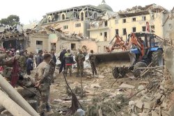 Photo : Des immeubles endommagés par les bombardements à Ganja, en Azerbaïdjan. PHOTO ASSOCIATED PRESS