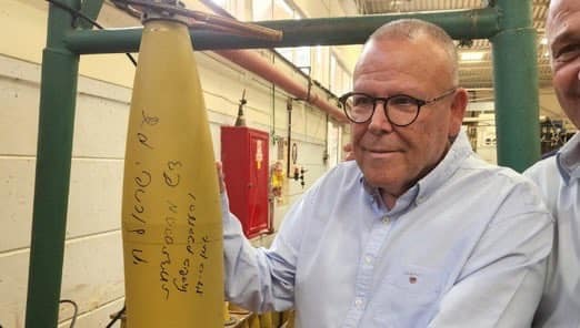 « Sur la photo, vous pouvez voir le président de l’Histadrout-Israël, Arnon Bar-David, photographié la semaine dernière lors d’une visite dans deux usines d’armement : Elbit Systems et IAI. Sur un projectile destiné à être utilisé dans les bombardements dans la bande de Gaza, il a écrit :