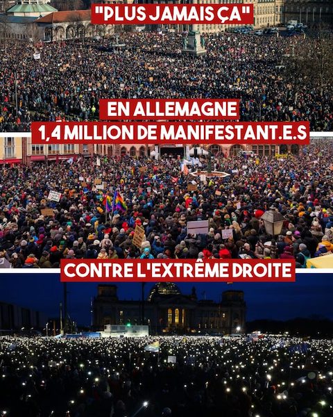 Plus de 1,4 million de personnes ont manifesté contre l’extrême droite ce week-end en Allemagne.
