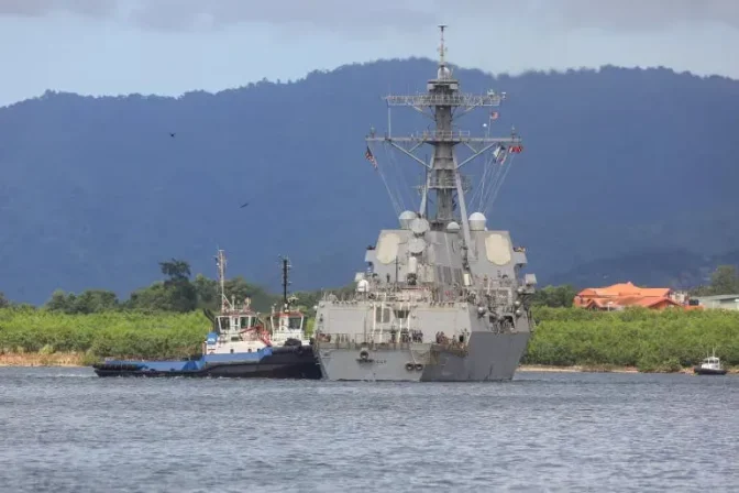 Dix mille soldats à bord de l’USS Gerald R. Ford, le plus grand navire de guerre au monde, patrouillent désormais dans les Caraïbes, flanqués de destroyers, de navires d’assaut amphibie et d’un sous-marin nucléaire. Le Pentagone qualifie cette opération de lutte contre le trafic de drogue.