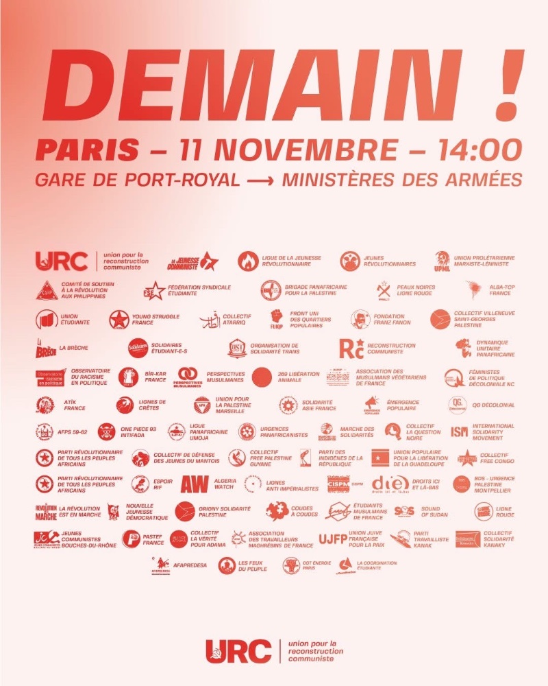 Mais ce 11 novembre 2025, nous ne manifesterons pas pour « commémorer », mais pour appeler à la lutte contre les fauteurs de guerre d’aujourd’hui !