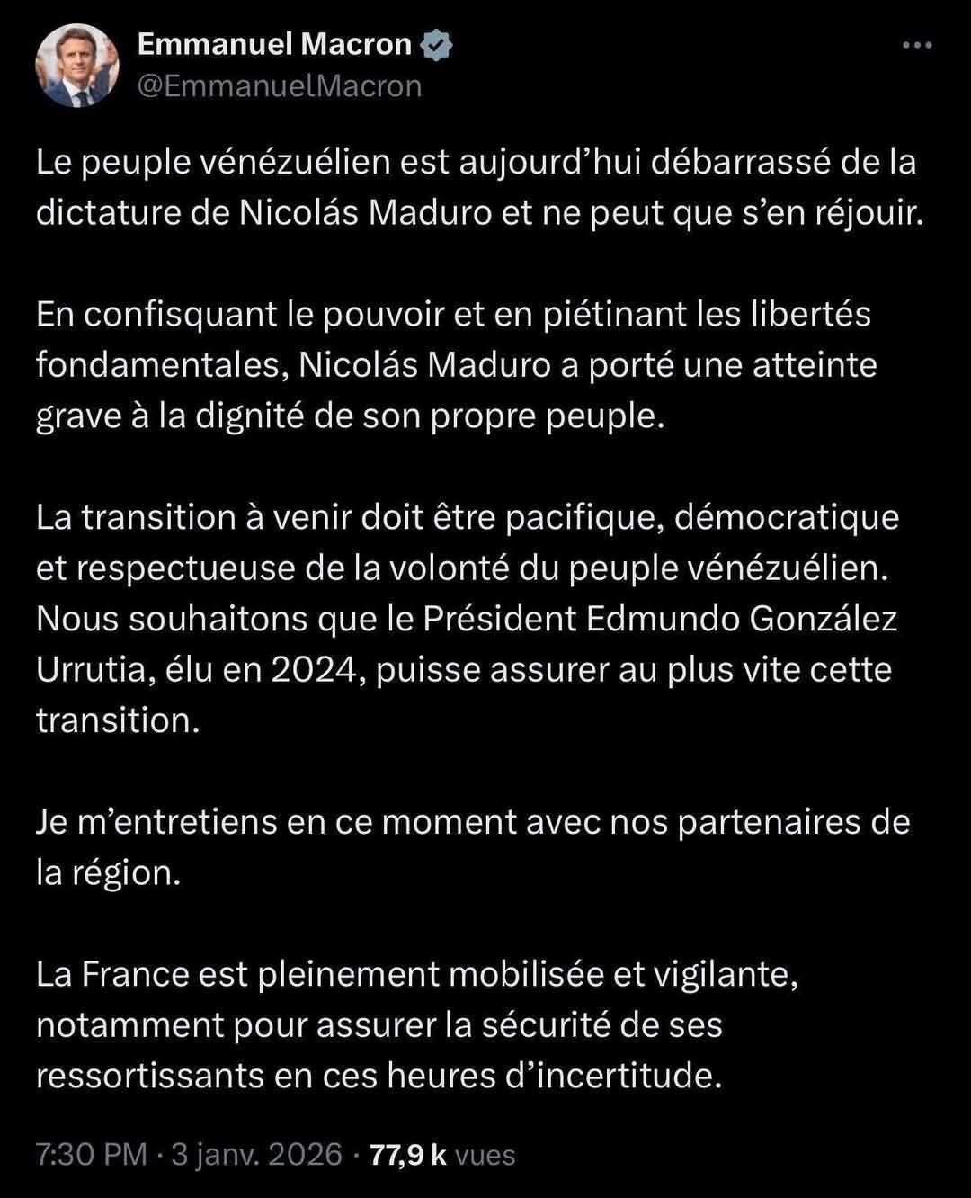 Quand j’ai lu ce communiqué "incroyable", pathétique de véritable fellation au Terrorisme yankee, je n’ai pas pensé un seul instant "Macron démission ».