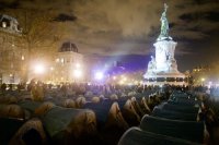 .. La statue de la République était pétrifiée. Le pire n’est pas les images, c’est la nuit qui a de nouveau avalé les exilés dehors. Le pire est que les 400 exilé.e.s présents, à 19h, place de la République, dormiront de nouveau dehors cette nuit, loin à Clichy, loin à Saint-Denis, cachés sous les ponts des canaux ou ailleurs, invisibles. Le pire est que de nouveau, nous ne les verrons pas s’endormir blessés dans le froid.